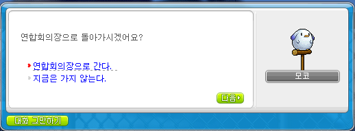 ※ 게임 진행 중 '모코' 클릭하면 연합회의장으로 돌아갈 수 있다.