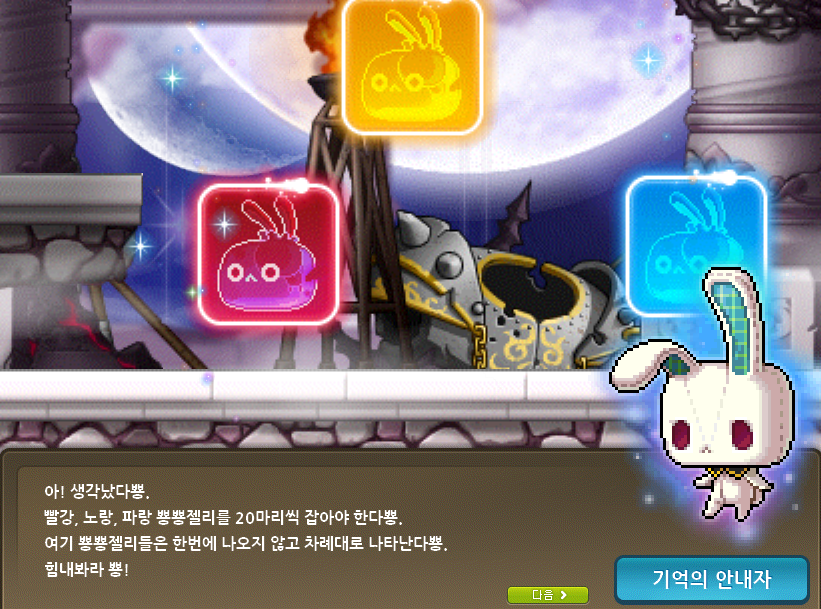 22) 몬스터를 처치해서 토끼 인형을 얻고 토끼 상자에 채우면 포탈이 열린다.