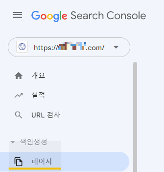 1) 구글 서치콘솔에 접속하고 '페이지' 클릭