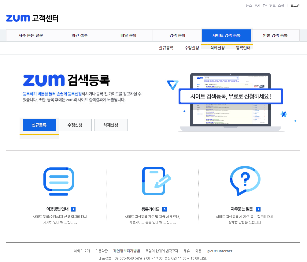 1) 줌(ZUM) - 사이트 검색등록에 접속