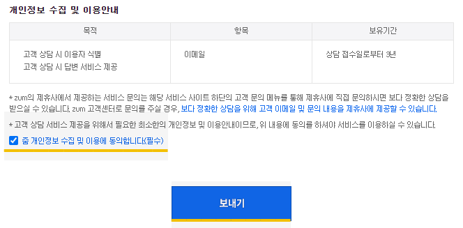2) 양식 작성 후 '체크' 하고 '보내기' 클릭