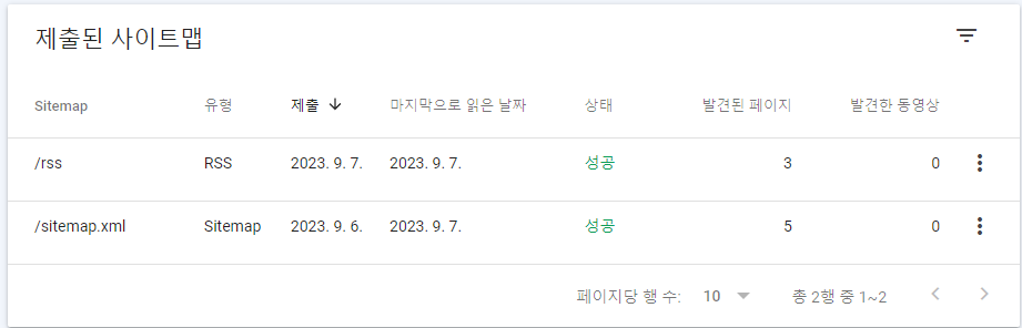15) 제출된 사이트맵 창에서 상태가 가져올수없음 뜨면 새로고침(F5) 하거나 하루이틀 시간이 지나면 '성공'이 뜹니다.