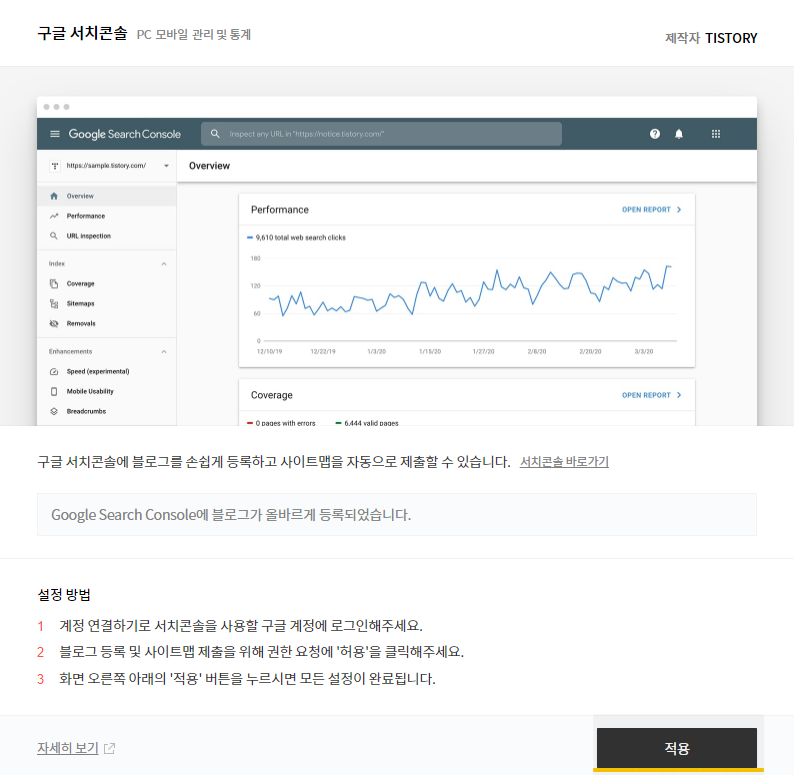 10) 티스토리 하위블로그로 돌아와서 '적용' 클릭