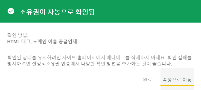 8) 속성과 소유권이 확인되면 '속성으로 이동' 클릭