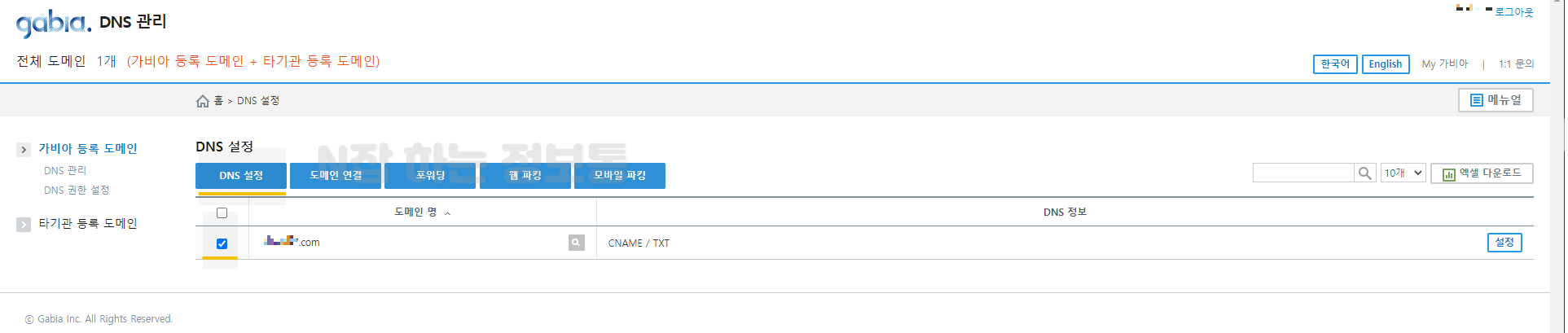 4) 해당 도메인 체크하고 'DNS 설정' 클릭