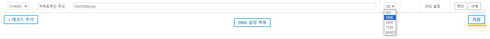 TTL은 '600 → 1800' 으로 변경 후 '확인' 누르고 '저장' 클릭