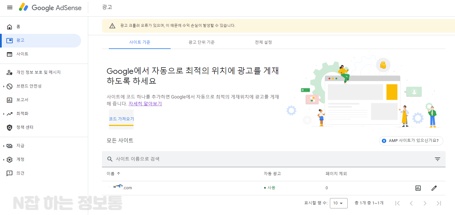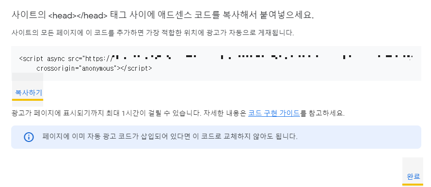 5) 구글 애드센스를 연동해줍니다.