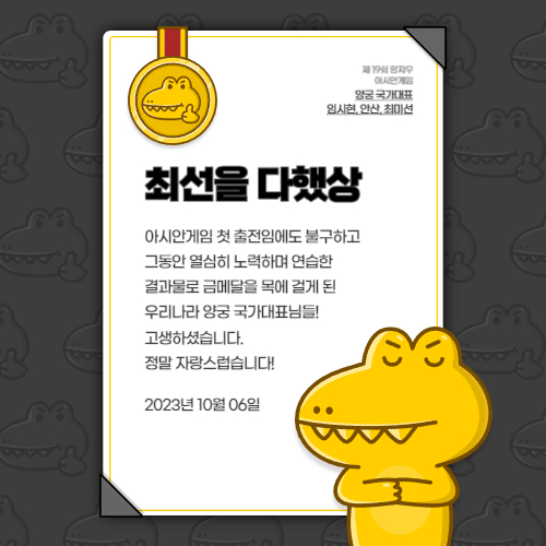 지금까지 [이슈] 제 19회 항저우 아시안게임 단체전 양궁 7연패 금메달에 대해 알아봤습니다.