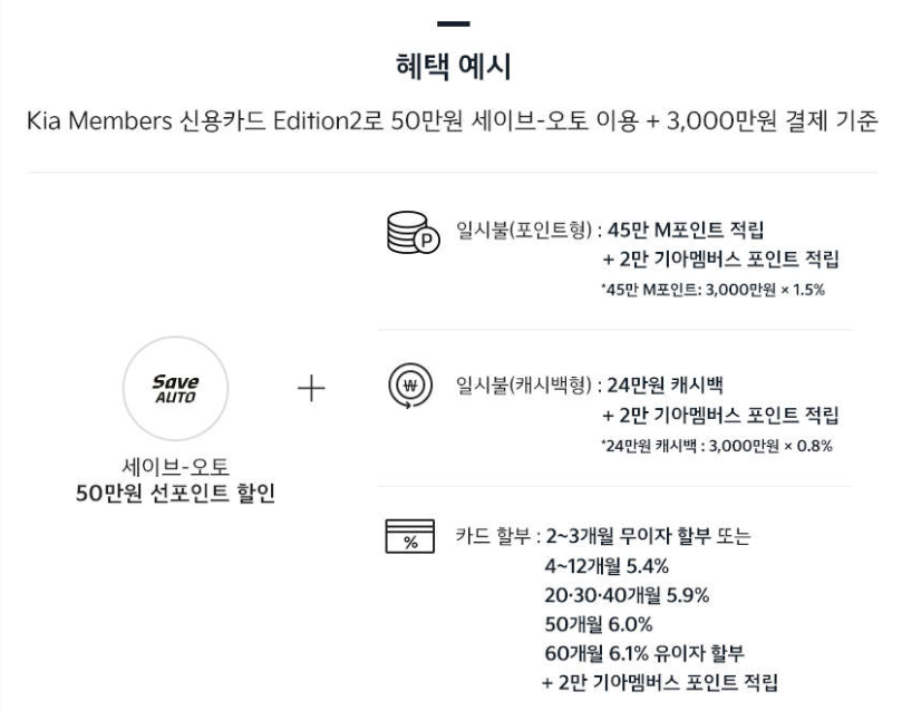 4) 특별 적립 : 차량 결제금액이 200만 원 이상이고 세이브-오토 이용시 '기아멤버스 20000점 포인트 적립'