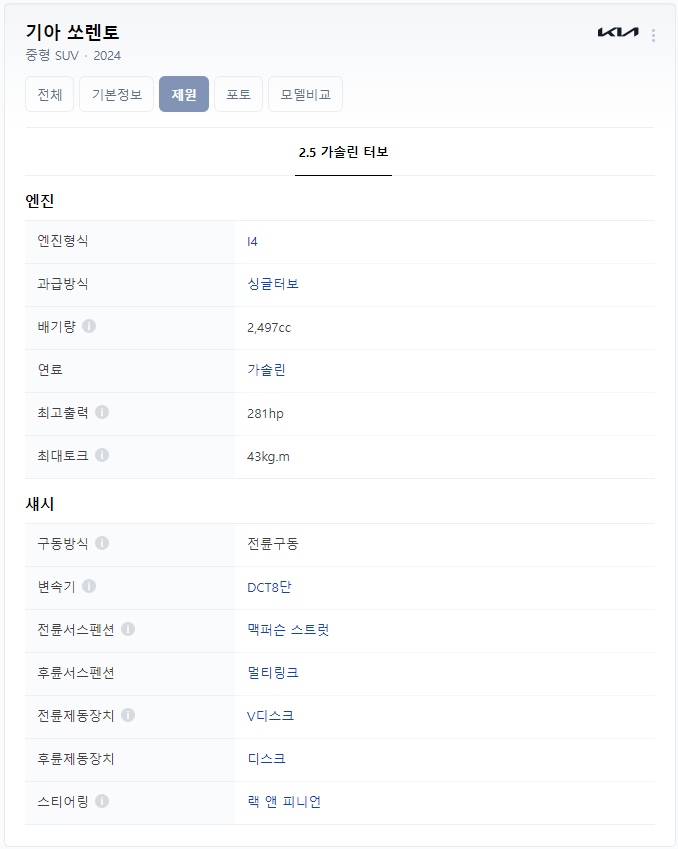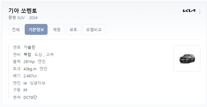 - 출처 : 네이버에 2024 쏘렌토 검색