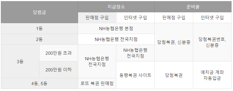 - 당첨금은 로또복권 판매점에서만 지급받으실 수 있습니다. (지역농·축협 제외)