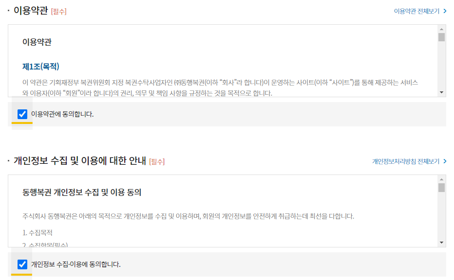 1) 약관 동의 '체크'를 합니다.