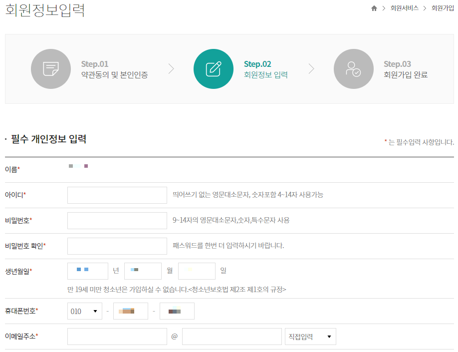 6) 개인 정보 입력하고 '회원가입'을 클릭합니다.