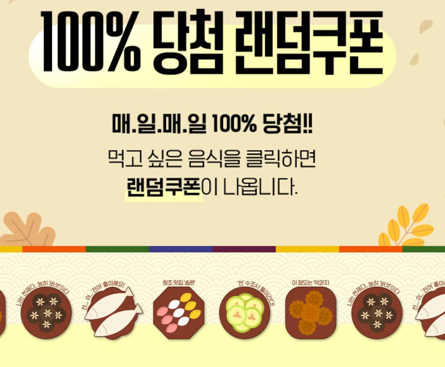 아래의 홈페이지에 들어가서 먹고싶은 음식을 클릭하면 랜덤쿠폰이 발급됩니다.