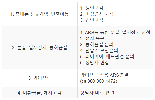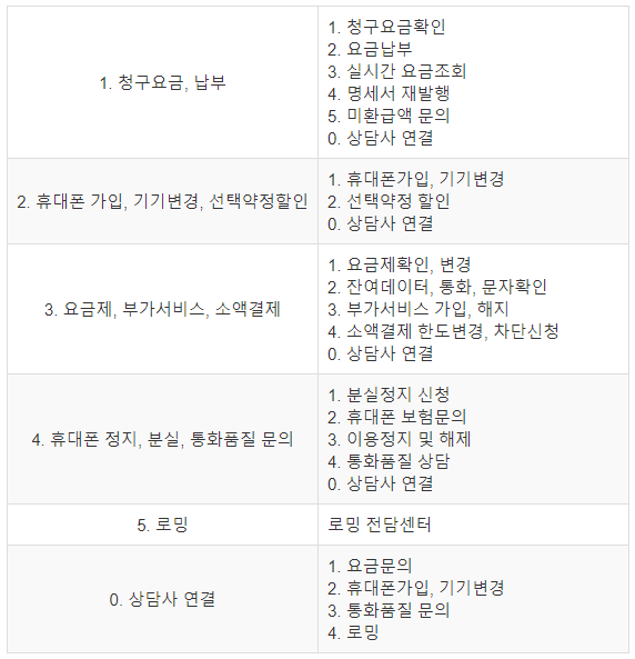 무선상품 ARS 메뉴