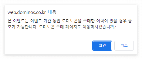 - 대상 : 도미노콘 1회 이상 구입한 온라인 회원 (만 19세 이상)