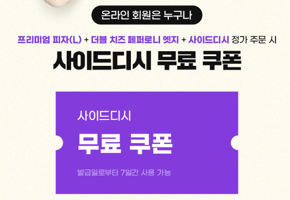 사이드 디시 무료 쿠폰(발급일로부터 7일간 사용 가능)