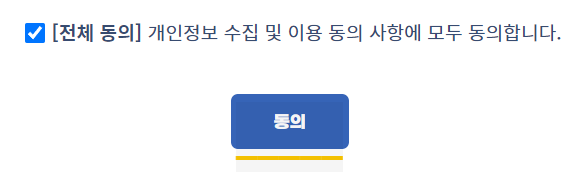 6) 전체 동의 체크 후 '동의' 클릭