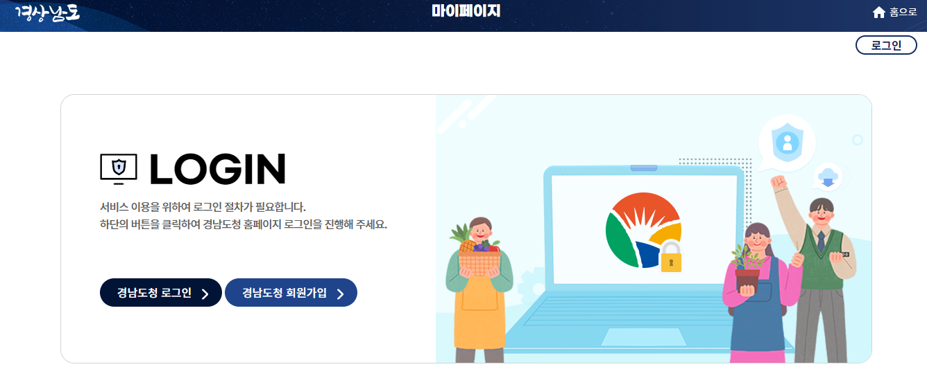 3) 경상남도청 '로그인' 또는 '회원가입'을 합니다.